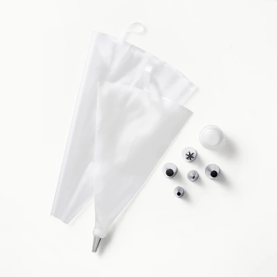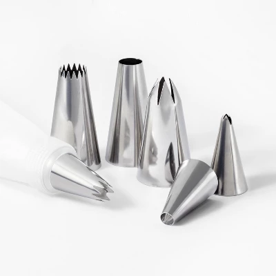 - Includes 6 assorted tips, large and standard coupler and 10in and 12in reusable piping bags