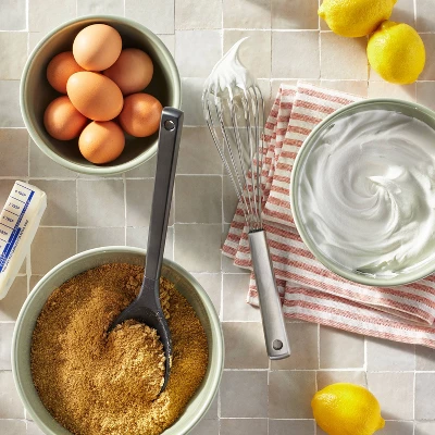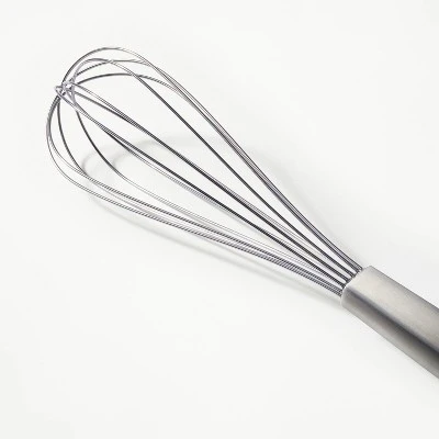 Easily tackle medium- to large-sized mixing tasks with this 12-Inch Stainless Steel Balloon Whisk from Figmint™. This balloon whisk’s stainless steel construction makes it built to last and easy to maintain, and the ergonomically designed handle offers comfortable use. It features a silver finish for easy pairing with your other kitchenware, and it can be tossed in the dishwasher after use for easy cleaning.
