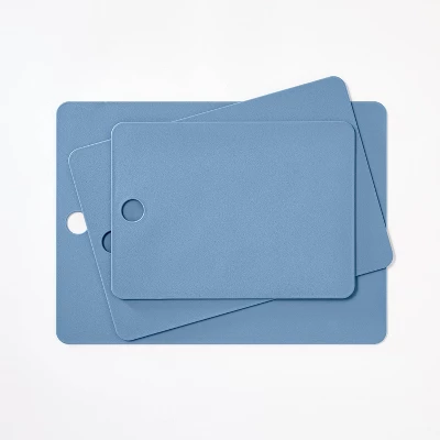 The 3-Piece Recycled Poly Essentials Cutting Board Set from Figmint™ gives you the work surfaces you need for all your cooking, baking and even serving needs. All three sizes of cutting boards are sizeable enough for a variety of food prep, and they’re reversible so you don’t have to worry about wearing them out. Plus, the end is finished with a round cutout for convenient hanging storage.