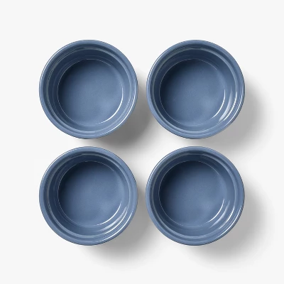 Bake your small culinary delights using these 4-Piece Ramekin bowls from Figmint™. Made of stoneware, these blue ramekin bowls are designed in a round shape for versatile cooking options. Their oven-safe construction gives you an array of baking opportunities, and they’re also microwave, freezer and dishwasher safe.