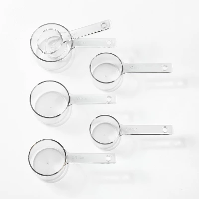 This 6-Piece Tritan Plastic Measuring Cups Set from Figmint™ makes it easy to accurately measure solid or liquid ingredients for a variety of recipes. The set includes 1/4 cup, 1/3 cup, 1/2 cup, 2/3 cup, 3/4 cup and 1 cup measurements for versatile use, and all of the pieces are made from BPA-free Tritan™ plastic for easy measuring. The handles have hanging holes and snap together for space-saving storage options, and they’re also dishwasher safe for easy cleaning.