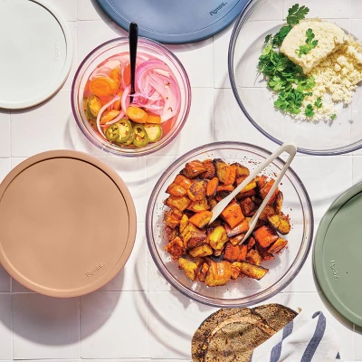 Whether you need an extra storage solution for leftover food or an easy way to prep ingredients for your next cooking task, the 8-Piece Glass Set of 4 Mixing Bowls with Lids from Figmint™ makes a great pick. This set of glass mixing bowls comes with four bowls and four lids in varying sizes — 1.5 quart, 1.5 quart, 2.5 quart and 4 quart. Perfect for mixing ingredients, storing leftovers or serving dishes, they’re sure to come in handy for a variety of cooking and storing needs. Tight-fitting lids help keep your stored food fresh, while the dishwasher-, microwave- and freezer-safe design allows for easy cleaning, reheating and longer storing.