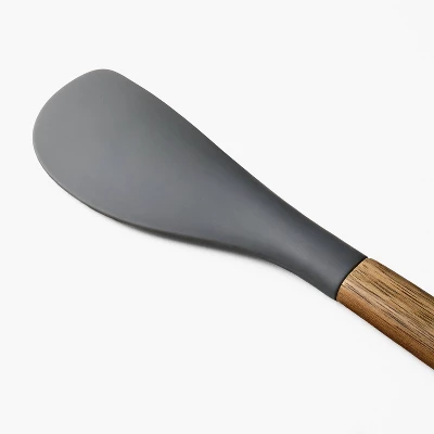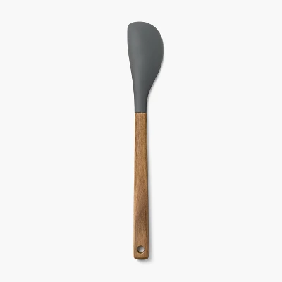 Upgrade your kitchen utensil collection with this Acacia Wood/Silicone Spatula from Figmint™. This spatula features a gray silicone head and a wooden handle, making it perfect for flipping, turning and serving a variety of dishes. Constructed from BPA-free material, this spatula can withstand temperatures up to 450°F.