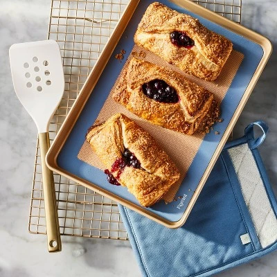 This Stainless Steel and Nylon Slotted Turner from Figmint™ makes turning eggs, flipping pancakes and more as easy as can be. Designed in solid hues, the turner has a nylon head that’s stick resistant and won’t scratch metal and an ergonomic stainless steel handle that’s comfortable to use. It’s dishwasher safe for easy cleaning and resists heat up to 450 degrees Fahrenheit, and the hanging hole offers a simple, space-saving storage solution.